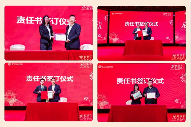 晚宴开始,集团同各职能部门、各分公司、各事业部代表分别签订责任目标书,旨在坚持“向管理要效益、向市场要潜力、向机制要活力”,齐心协力推动企业向高质量发展。