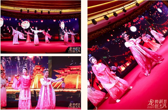 晚宴上,还设置了丰富多彩的歌舞表演、互动游戏,现场气氛热烈,一次次推向高潮,大家举杯相聚,最后晚宴以快乐的抽奖互动画上了完美的句号。